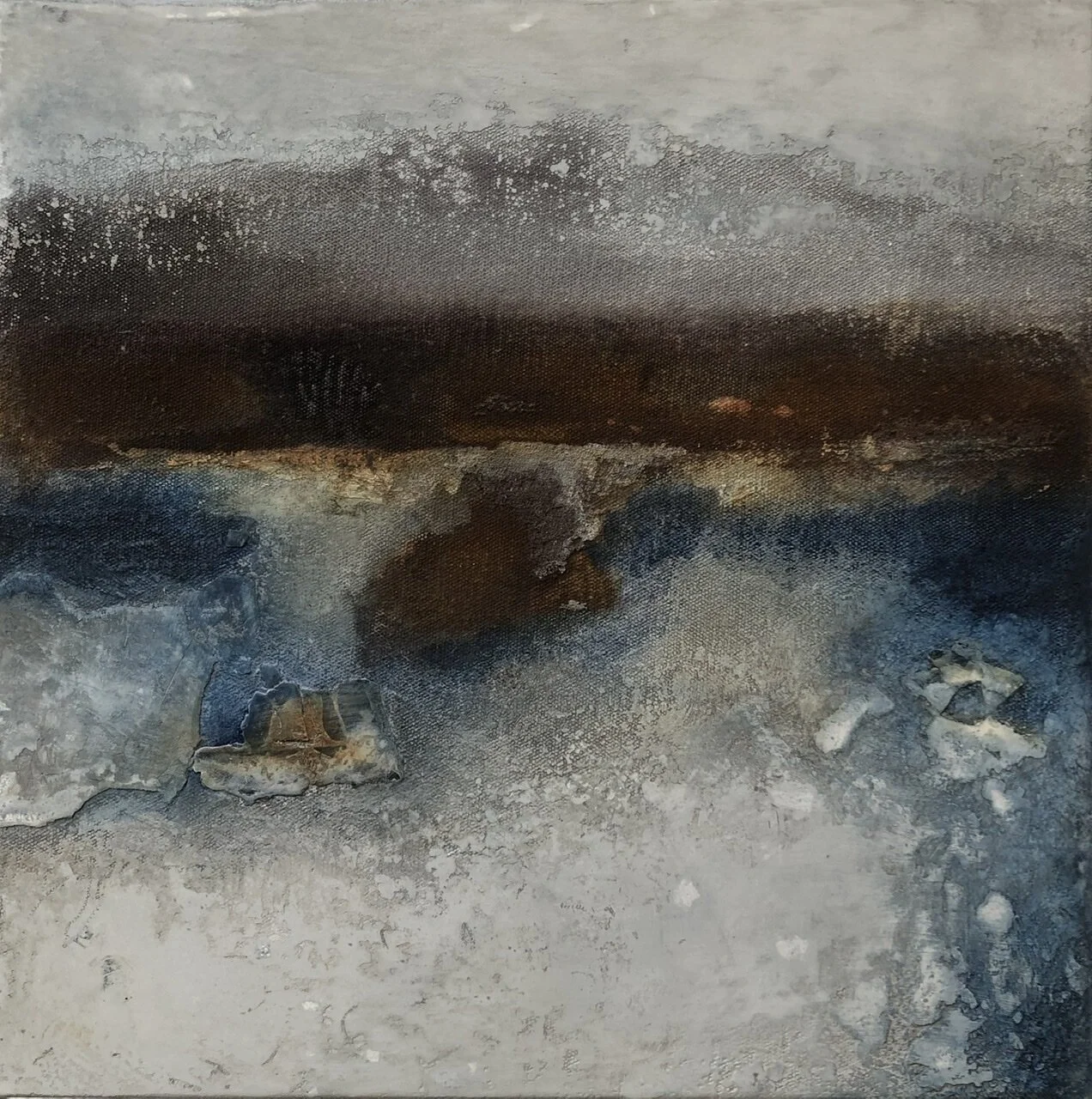 Hinterland III > 300 x 300 x 90mm Polished marble, minerals and oils on canvas